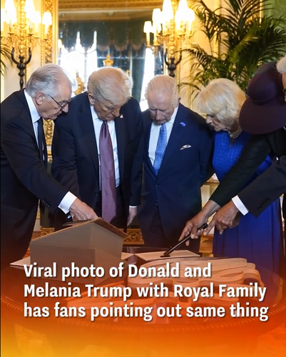 On the opening day of Donald and Melania Trump’s official state visit to the United Kingdom, one unexpected moment captured global attention—and it wasn’t political. A photo taken during a private viewing of the Royal Collection at Windsor Castle, featuring King Charles III, Queen Camilla, former President Trump, and former First Lady Melania Trump, quickly went viral. While the royal artifacts were part of the setting, it was Melania Trump’s striking fashion that stole the spotlight.