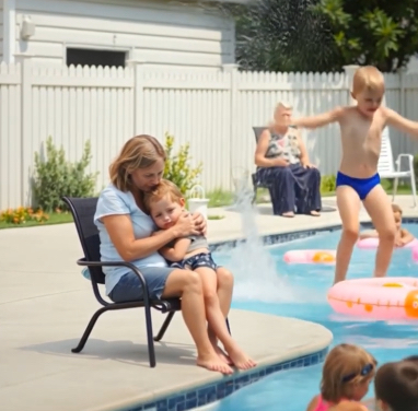 As we walked past the pool, laughter from the other children carried through the air—blissfully unaware of the tension that had just unfolded.